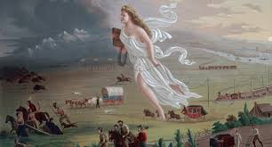 Cette vision d’un territoire et d’un bonheur à conquérir prend racine dans le mythe de la Manifest Destiny (Destinée Manifeste), expression employée pour la première fois par le journaliste John O’Sullivan en 1845 dans un article qui plaidait en faveur de l’annexion du Texas par les États-Unis : « C’est notre destinée manifeste de nous déployer sur le continent confié par la Providence pour le libre développement de notre grandissante multitude ». Une vision expansionniste qui préfigure l’Amérique contemporaine. La Destinée Manifeste nourrit l’imaginaire américain depuis ses origines. C’est un récit providentiel hérité des colons puritains installés au XVIIe siècle. Les Pilgrims, comme on les appelait, croyaient être des élus de Dieu, destinés à peupler ce territoire vierge : un nouvel Eden épargné par les vices européens engendrés par l’Église Romane.