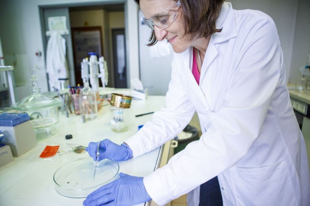 En laboratoire, elle procède à un tri visuel pour éliminer la matière organique des prélèvements réalisés sur le terrain. Plusieurs étapes sont ensuite nécessaires avant d’obtenir ce filtrat, une galette contenant d’éventuelles particules plastiques mais pleine de sédiments, qu’il faudra encore purifier. Un travail de fourmi, qu’il sera nécessaire de répéter pour chaque échantillon prélevé.