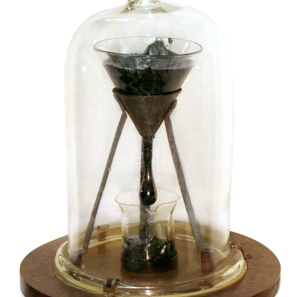 En 1927, le professeur Thomas Parnell, de l’Université du Queensland en Australie, décide de lancer l’expérience de la goutte de poix pour montrer aux étudiants l’état fluide et incroyablement visqueux de matières a priori solides au premier coup d’oeil. La poix en est un exemple, une matière noire gluante et collante dérivée du pétrole ou de la résine de certains bois. Curiosité oblige, Parnell décide d’étudier la viscosité de ces matières étranges autrement dit la capacité d’un liquide à se laisser déformer se mesurant en « Pascals-Seconde » (Pa.s).