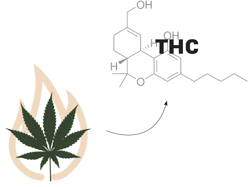 Le THC n’est en fait pas directement synthétisé par la plante. En effet, elle produit de l’acide tétrahydrocannabinolique (THCA) qui sera lentement oxydé sous l’effet de la chaleur. Ce processus est accéléré lorsque la température augmente, c’est pour cela que le cannabis est très souvent fumé !