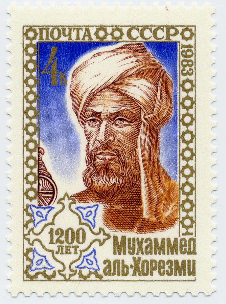 Savant arabe ayant travaillé dans de nombreux domaines, Al-Khwârismî sera surtout retenu par l’histoire pour ses apports en mathématiques. Originaire de l’actuel Ouzbékistan, où il serait né durant la fin du VIIIe siècle. On connaît peu les événements de sa vie, si ce n’est qu’il se rendit et travailla à Bagdad. Son traité Abrégé du calcul par la restauration et la comparaison sera considéré comme l’acte fondateur de l’algèbre. C’est du titre de son ouvrage que viendra le terme « algèbre », de l’arabe al-jabr, la restauration, l’une des techniques qu’il met en œuvre avec l’al-muqabala, la réduction, pour résoudre des problèmes mathématiques. Mais si les équations vous font peur, pas de panique ! À l’époque d’Al-Khwârismî, les notations littérales, du type ax + b = c, n’ont pas encore été inventées, et tous ses problèmes sont résolus en phrases. On désignera sa méthode par le terme d’« algèbre rhétorique ». Les mathématiques du savant s’appuient sur la vie courante, ses problèmes s’inspirent de cas de succession ou de partage de terre. Il utilise d’ailleurs le dirham, l’unité de monnaie, pour désigner les unités qui s’additionnent aux inconnues et à leurs carrés.